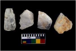 | Description / विवरण | There are n 4 utilized flake cores. One is tapering at one end and three have blunted edges. |