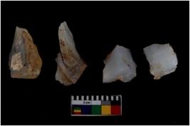 | Description / विवरण | Specimen of flake tools with prominent flaking marks. They are made up of a short flakes with sides trimmed. |