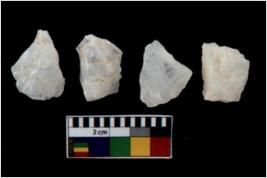 | Description / विवरण | There are n 4 utilized flake cores. One is tapering at one end and three have blunted edges. |