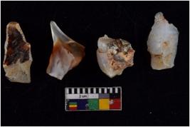 | Description / विवरण | There are n 4 flakes tool; there are multidirectional irregular scar pattern on them; made of short flakes and all four have tapering edges. |