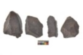 | Description / विवरण | There are n 4 utilized flake cores. There are multi directional irregular scar pattern on both dorsal and ventral face of the flake cores. Two have blunted edges and two have flat base. |