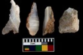 | Description / विवरण | There are n 4 utilized flake cores. There are multi directional irregular scar pattern on them. Two are tapering at one end and two have sharp edges. |