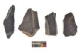 | Description / विवरण | There are n 4 utilized flake cores. There are multi directional irregular scar pattern on both dorsal and ventral face of the flake cores. Two are tapering at one end and two have sharp edges. |