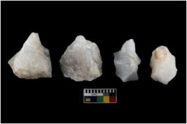 | Description / विवरण | There are n 4 of utilized worked cores. They show multidirectional irregular scar pattern. Three are tapering on one end. |