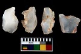 | Description / विवरण | There are n 4 utilized flake cores. There are multi directional irregular scar pattern on them. One is tapering at one end and three have blunted edges. |