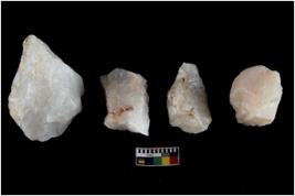 | Description / विवरण | There are n 4 of utilized worked cores. They show multidirectional irregular scar pattern. Two are tapering on one end. |
