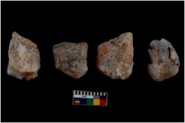 | Description / विवरण | Specimen of flake tools with prominent flaking marks. They are made up of a short flakes with sides trimmed. |