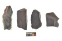 | Description / विवरण | There are n 4 utilized flake cores. There are multi directional irregular scar pattern on both dorsal and ventral face of the flake cores. Three are tapering at one end and one has blunted edge. |