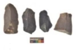 | Description / विवरण | There are n 4 utilized flake cores. There are multi directional irregular scar pattern on both dorsal and ventral face of the flake cores. Three are tapering at one end and one has blunted edge. |