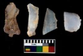 | Description / विवरण | There are n 4 utilized flake cores. There are multi directional irregular scar pattern on them. Three are tapering at one end and one has sharp edge. |