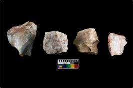 | Description / विवरण | There are n 4 of utilized worked cores. They show multidirectional irregular dominant scar pattern and have sharp edges. |
