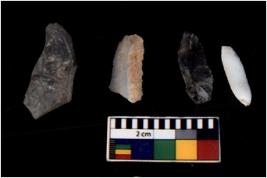 | Description / विवरण | There are n 4 flakes tool; there are large flakes with sides trimmed, Marks of secondary flaking are present on the both the faces. |