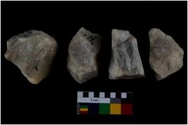 | Description / विवरण | Specimen of a cores with several broad fluted marks and some of them are tapering at one end. |
