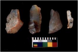 | Description / विवरण | There are n 4 flakes tool; there are large flakes with sides trimmed, Marks of secondary flaking are present on the both the faces. |