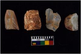 | Description / विवरण | There are n 4 flakes tool; there are large flakes with sides trimmed, Marks of secondary flaking are present on the both the faces. The dorsal is relatively flat |