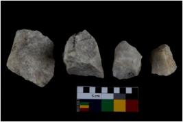| Description / विवरण | Specimen of a cores with several broad fluted marks and some of them are tapering at one end. |