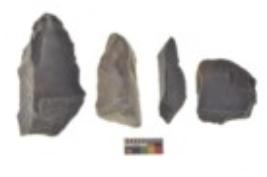 | Description / विवरण | There are n 4 utilized flake cores. There are multi directional irregular scar pattern on both dorsal and ventral face of the flake cores. Two have sharp edges and two have blunted edges. |