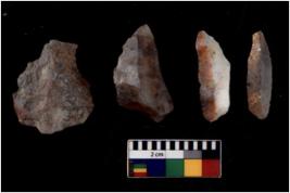 | Description / विवरण | There are n 4 flakes tool; there are large flakes with sides trimmed, Marks of secondary flaking are present on the both the faces. |