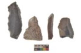 | Description / विवरण | There are n 4 utilized flake cores. There are multi directional irregular scar pattern on both dorsal and ventral face of the flake cores. Two are tapering at one end and two have blunted edges. |