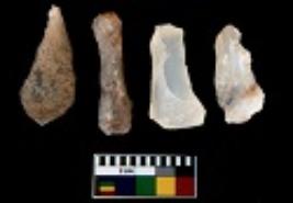 | Description / विवरण | There are n 4 utilized flake cores. There are multi directional irregular scar pattern on them. All of them are tapering at one end. |