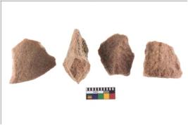 | Description / विवरण | There are n 4 utilized flake cores. There are multidirectional irregular scar pattern on both dorsal and ventral face of the flake cores. |