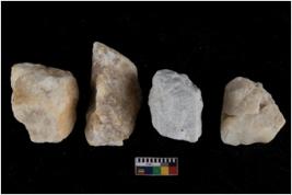 | Description / विवरण | Specimen of a cores with several broad fluted marks. The reverse bulb and platform can be seen. |