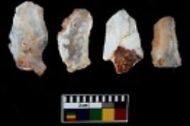 | Description / विवरण | There are n 4 utilized flake cores. There are multi directional irregular scar pattern on them. All of them are tapering at one end. |