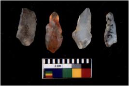 | Description / विवरण | There are n 4 flakes tool; there are large flakes with sides trimmed, Marks of secondary flaking are present on the both the faces. |