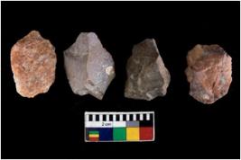 | Description / विवरण | There are n 4 of utilized worked cores. They show multidirectional irregular scar pattern. Three have broken tip. |