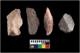| Description / विवरण | There are n 4 of utilized worked cores. They show multidirectional irregular scar pattern. Three are tapering at one end. |