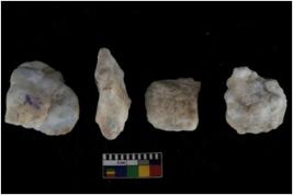 | Description / विवरण | Specimen of a cores with several broad fluted marks and some of them are tapering at one end. |