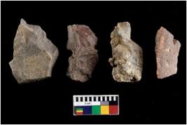| Description / विवरण | There are n 4 of utilized worked cores. They show multidirectional irregular scar pattern and have sharp edges. Two are tapering on one end. |