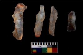 | Description / विवरण | There are n 4 flakes tool; there are large flakes with sides trimmed, Marks of secondary flaking are present on the both the faces. |