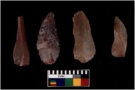 | Description / विवरण | There are n 4 flakes tool; there are large flakes with sides trimmed, Marks of secondary flaking are present on the both the faces. |
