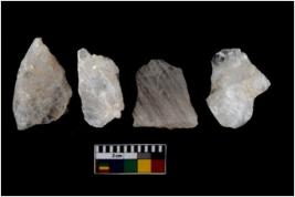 | Description / विवरण | There are n 4 flake cores. One is tapering at one end and three have blunted edges. |