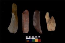 | Description / विवरण | There are n 4 flakes tool; there are large flakes with sides trimmed, Marks of secondary flaking are present on the both the faces. |