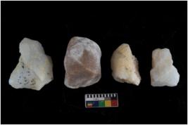 | Description / विवरण | Specimen of a cores with several broad fluted marks and some of them are tapering at one end. |