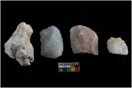 | Description / विवरण | Specimen of a cores with several broad fluted marks and some of them are tapering at one end. |