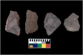 | Description / विवरण | There are n 4 flakes tool; there are large flakes with sides trimmed, Marks of secondary flaking are present on the both the faces. The dorsal is relatively flat. |