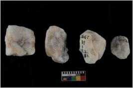 | Description / विवरण | Specimen of a cores with several broad fluted marks, the reverse bulb and platform can be seen. |