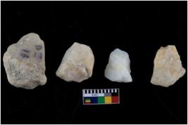 | Description / विवरण | Specimen of a cores with several broad fluted marks and some of them are tapering at one end. |