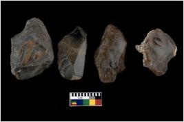 | Description / विवरण | There are n 4 cores; there are multidirectional irregular scar pattern on them. The flake scars are seen on all sides. The reverse bulb and platform can be seen. |