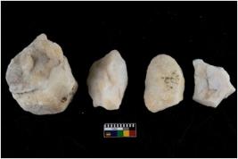| Description / विवरण | Specimen of a cores with several broad fluted marks, the reverse bulb and platform can be seen. |
