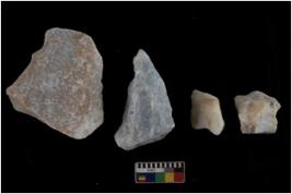 | Description / विवरण | Specimen of a cores with several broad fluted marks. The reverse bulb and platform can be seen. The flake scars are seen on all sides |