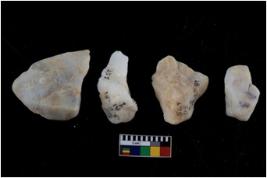 | Description / विवरण | Specimen of a cores with several broad fluted marks. The reverse bulb and platform can be seen. The flake scars are seen on all sides |