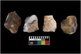 | Description / विवरण | There are n 4 utilized flake cores. There are multi directional irregular scar pattern on them. Three are tapering at one end and one has sharp edge. |