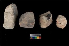 | Description / विवरण | There are n 4 cores; there are multidirectional irregular scar pattern on them. The flake scars are seen on all sides. The reverse bulb and platform can be seen. |