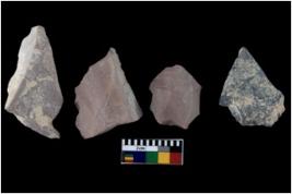 | Description / विवरण | There are n 4 flakes tool; there are flakes tool with prominent flaking marks. It made up of a large flakes with sides trimmed. It is irregular in shaped. |