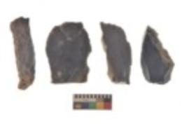 | Description / विवरण | There are n 4 utilized flake cores. There are multi directional irregular scar pattern on both dorsal and ventral face of the flake cores. Two are tapering at one end and two have sharp edges. |