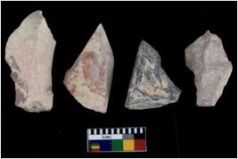 | Description / विवरण | There are n 4 flakes tool; there are flakes tool with prominent flaking marks. It made up of a large flakes with sides trimmed. It is rectangular in shaped. |